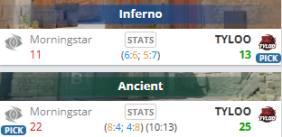 图二MOS选择远古遗迹,rage钢枪指挥附体,帮助队伍上半场取得8-4的领先。但TYLOO下半场不甘示弱,在一度8-12落后的情况下,顽强地将比赛拖入加时。加时赛,双方开始进入乱战节奏,最终历经四个加时的苦战,TYLOO最终以25-22惊险胜出,大比分2-0战胜Morningstar。