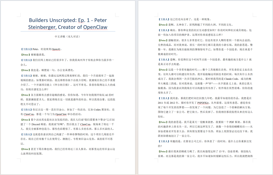 我拿一个OpenClaw创始人的YouTube访谈视频来试一下。
