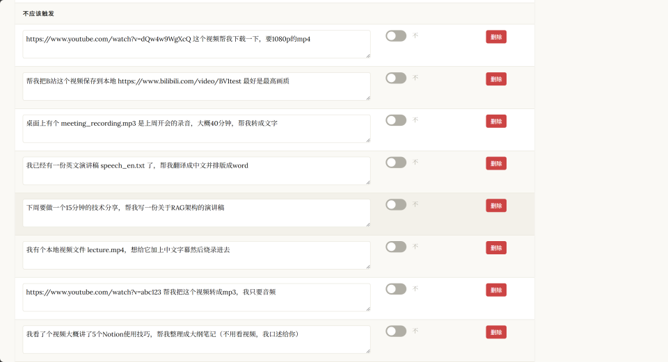 两个skill的触发条件都是给一个视频链接,我害怕他们会打架,就是出现该触发的不触发,不该触发的乱触发。
