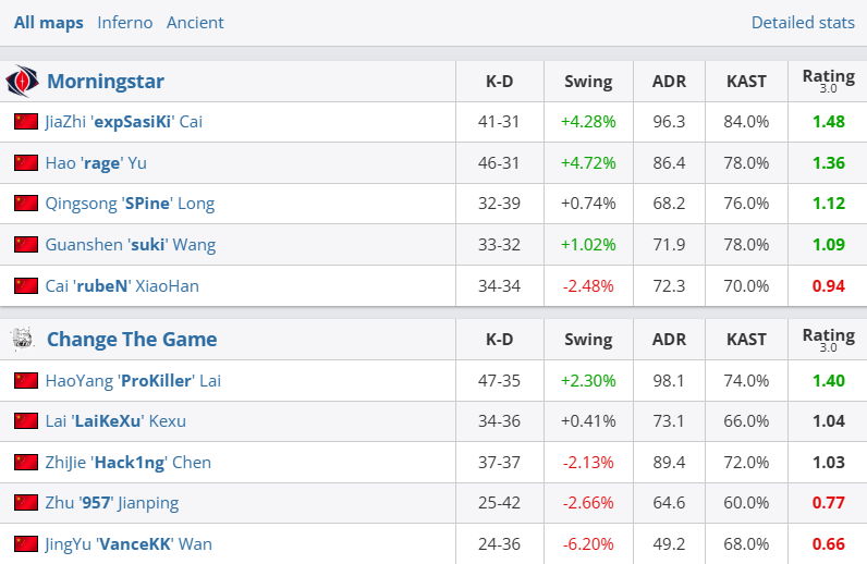 图一Inferno上半场在rage和expSasiKi联手发力下,Morningstar以钢铁防守豪取9分。换边尽管CTG一度追至7-9,但长枪局起Morningstar一波4-1攻势稳稳赢下图一。