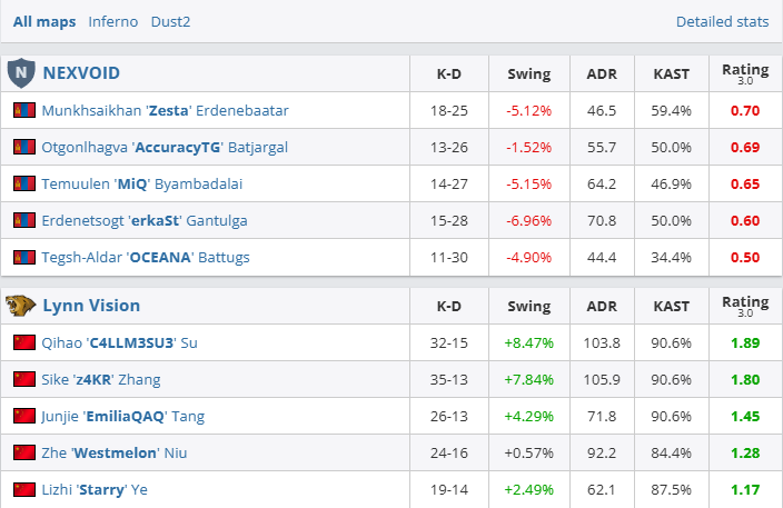 图二Dust2中国队各点开花,一波8-1梦幻开局将蒙古防线打得千疮百孔,LVG直接以枪法打出碾压局,蒙古队仅拿两分便光速出局。