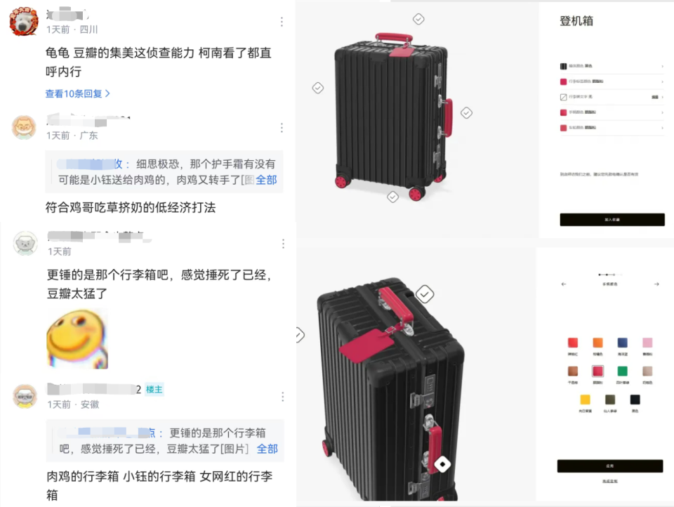 其次,在该女网红的动态中,曾出现Rookie同款的行李箱,手提柄是莓红色的。这款行李箱是特别定制款,只有11种颜色可供选择,rookie和女网红同时拥有,难道又是一个巧合吗?不少玩家看到行李箱照片后直呼实锤,并且还被集美们的能力所折服,纷纷感慨:集美这侦查能力,柯南看了都直呼内行。这些集美可能连客户端都没有一个,但到了这一个领域,一个个都是真人版柯南!就这样,Rookie小钰的分手带上了一个问号,而Rookie则被不少玩家怀疑出轨。