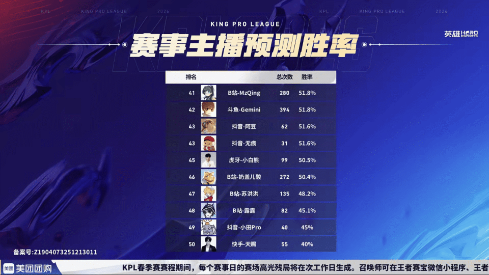 【赛事主播预测胜率】