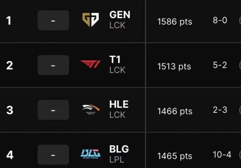 真正让不少观众感到疑惑的,是HLE居然排在第三位,要知道,这支队伍在今年的关键赛事中早早出局,甚至连季后赛阶段都没能顺利晋级,按理来说,一支刚刚被淘汰的队伍突然排进世界前三,多少显得有些违和,因此不少网友调侃,这样的排名更像是“历史积分榜”,而不是当前战力榜。