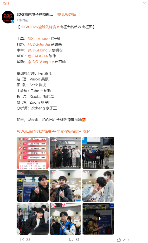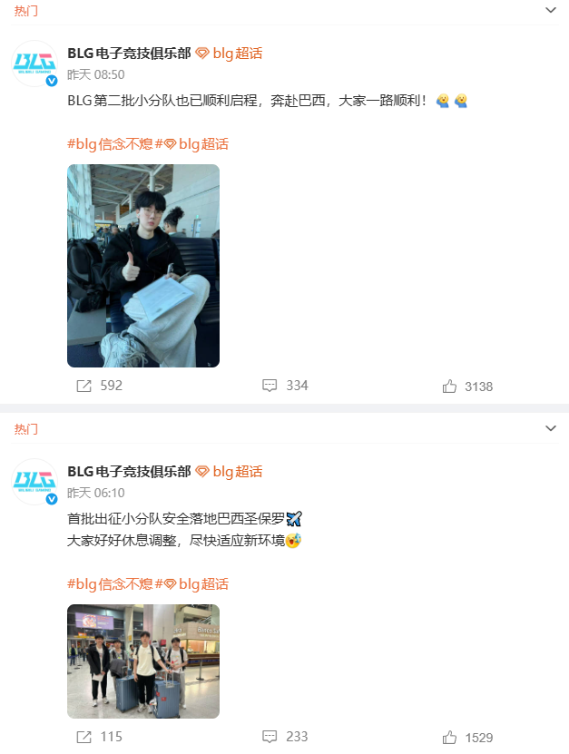 BLG与JDG晒照,已经出发前往巴西