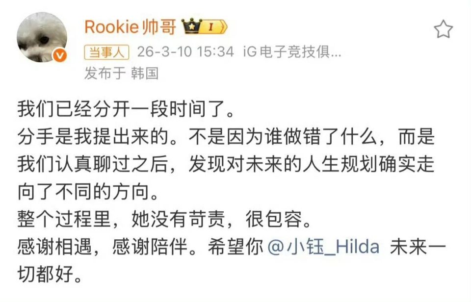 于是乎大家觉得是rookie提的分手