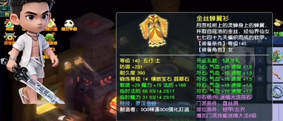 旭旭宝宝终究还是拿下了小昏招那件新鉴定出的140级魔敏双加44的罗汉金钟女衣!还记得当初小昏招信誓旦旦说“绝不卖给宝哥”吗?这不,在他爱播宝哥亲自出马的一番促膝长谈下,世上哪有什么不可能的事?装备一到手,咖啡豆立刻上号,二话不说就给打上了14段翡翠石。看来,这“齐天大圣第一盘丝洞”的称号,宝哥是势在必得了!
