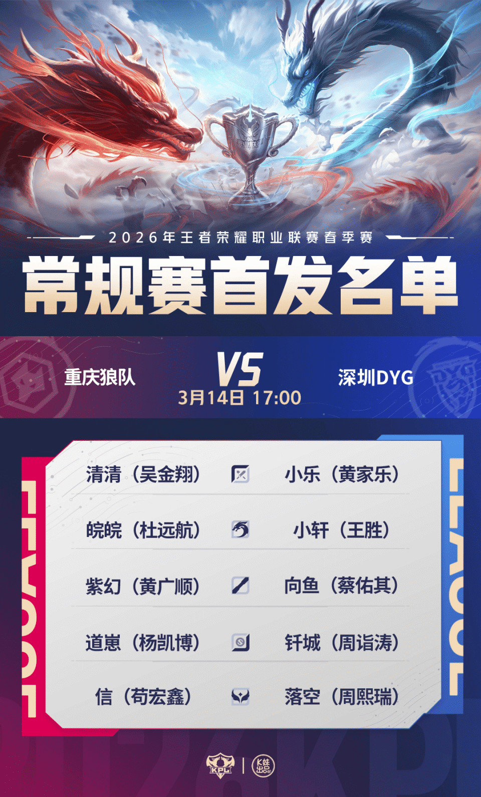 17:00 重庆狼队 vs 深圳DYG(S组,重庆)
