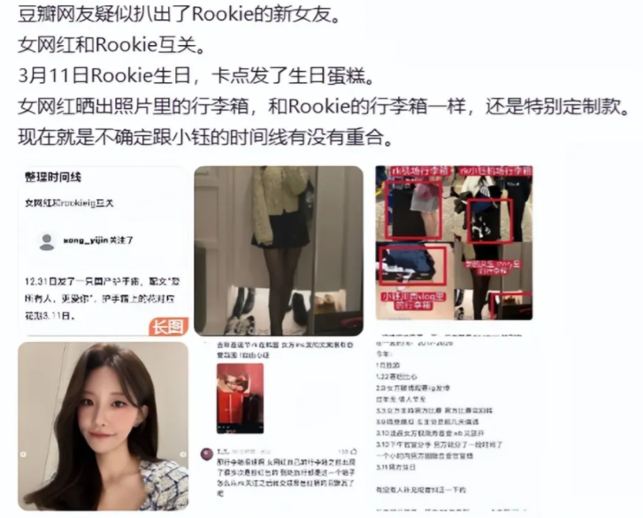 与此同时,网络上还出现了另一种说法,有爆料称,在分手消息公布前,有人曾在韩国看到Rookie与一位女网红一同外出就餐,并且随后一起上车离开,更有人声称听到Rookie在通话中用中文提到“分手”的话题,虽然这些说法目前都没有得到证实,但由于时间点与两人官宣分手非常接近,也让事件迅速发酵。