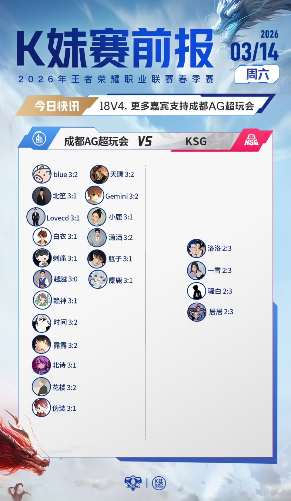 2026KPL春季赛常规赛第三轮W2D4【K妹赛前报】送达!