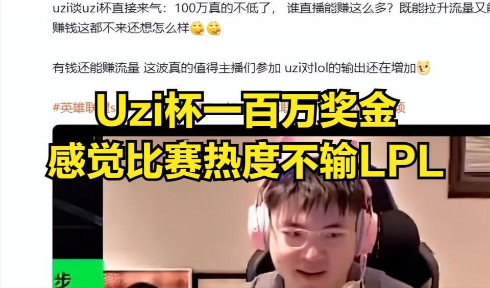 Uzi作为乌兹杯的举办方,Uzi在近期也在直播期间跟观众们诉苦,Uzi表示自己刚开始举办比赛就是想自嗨一下,让观众和粉丝们再看一眼,自己打比赛的样子。但是随着LPL和某牙官方下场,自己这个乌兹杯越办越大,很多不同平台的主播都在询问自己能不能参赛,而且如今的报名战队已经超过200,这些参赛选手都是LPL曾经的顶级选手和知名主播。