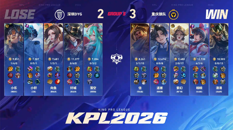 狼队3-2DYG,道崽力压钎城,清清白起稳定吃分,SK要扩充体系