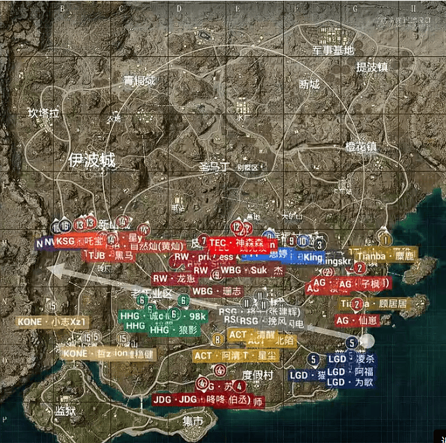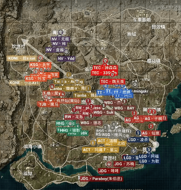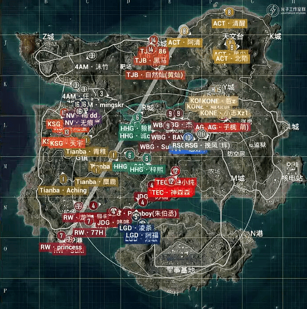 决胜时刻,信号圈缩在军事基地附近,圈内剩余杭州LGD战队、北京JDG战队和无锡KONE战队,此时场上4v3v3。LGD战队与KONE战队率先开战,一波人员互换后,KONE战队先被淘汰出局,随后剩余两队展开对战,LGD战队阿福精准出枪淘汰JDG战队最后一人拿下比赛,LGD再吃一鸡。