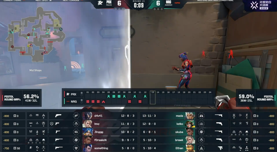 进入下半场NRG拿下手枪局,遭遇到PRX的强势翻盘,PRX打出一波四连胜。