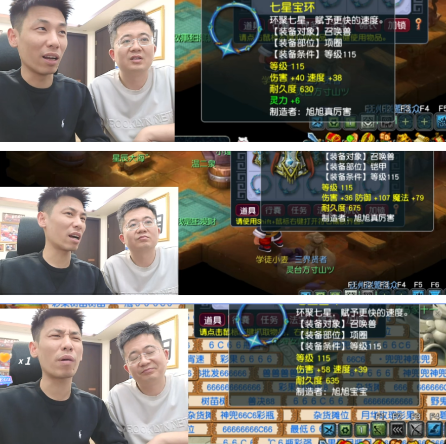 宝哥照例先玩梦幻,开局还是老规矩——打造宝宝装备。一口气打了30件115级的宝宝装,出了两个加30-40伤害的,还有一个不错的加了58点伤害。这运气嘛,说好不好,说坏也不算坏,中规中矩。