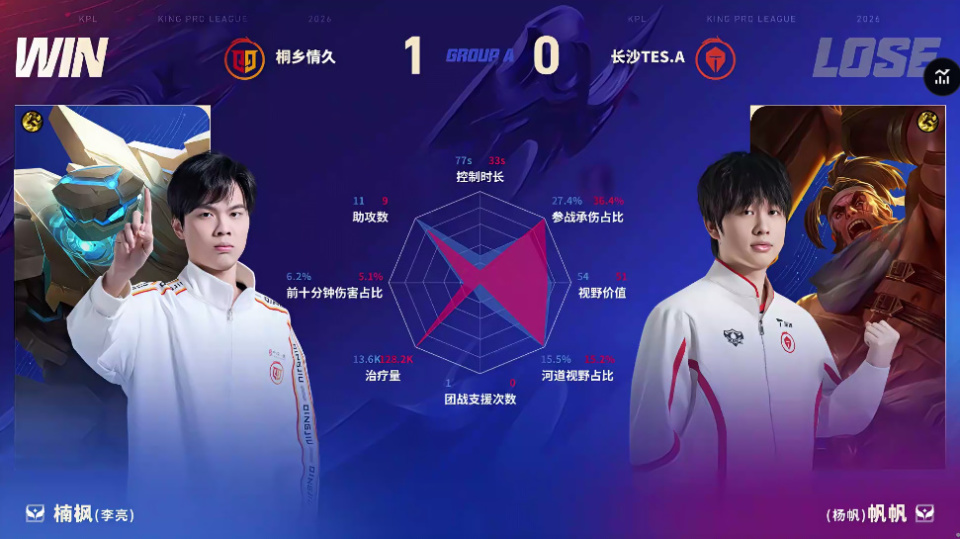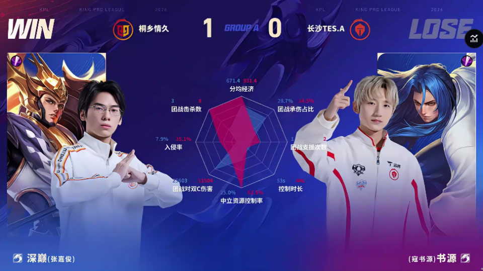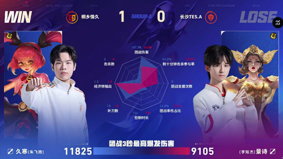 情久/TES.A第一局数据对比:无玄司空震团战伤害高达十万