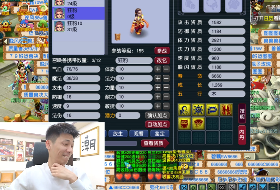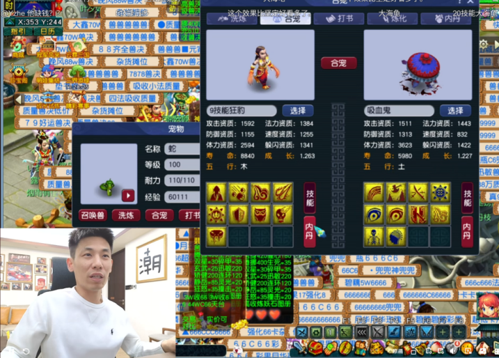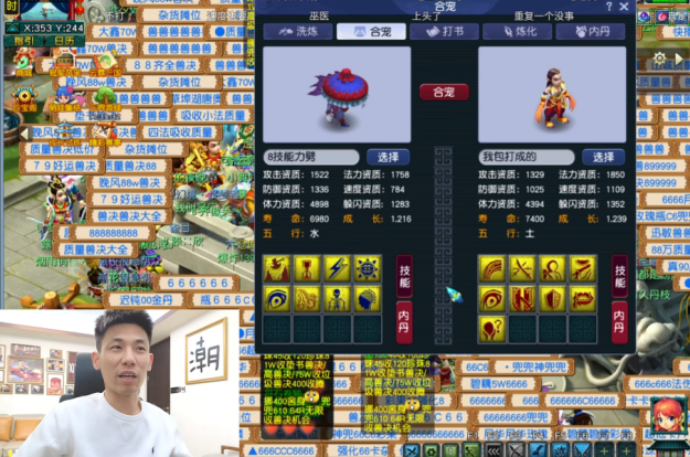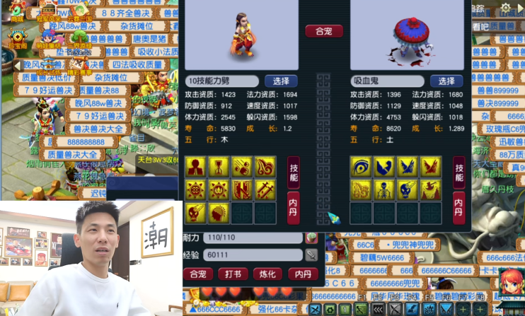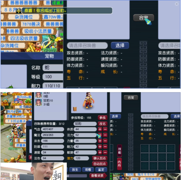 第一手操作,他买了一只8技能的力劈吸血鬼,跟自己的10技能狂豹合体炼妖。