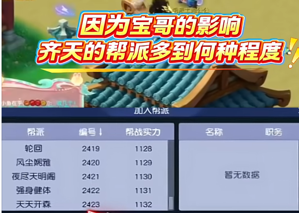 要说畅玩服里最火的服务器,齐天大圣绝对当之无愧。为啥?看看宝哥的影响力就知道了!自从宝哥入驻这个区,人气直接爆棚,不仅玩家数量猛增,就连帮派都多到离谱——目前全区竟然有2423个帮派!要知道,这可不是什么鬼区,而是实打实的火爆大区。帮派数量突破两千大关,足以说明玩家的热情有多高。每天都有新帮派成立,每天都有玩家涌入,齐天大圣的热度,依旧在持续飙升!