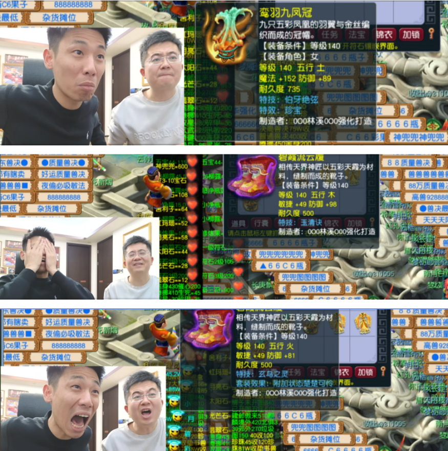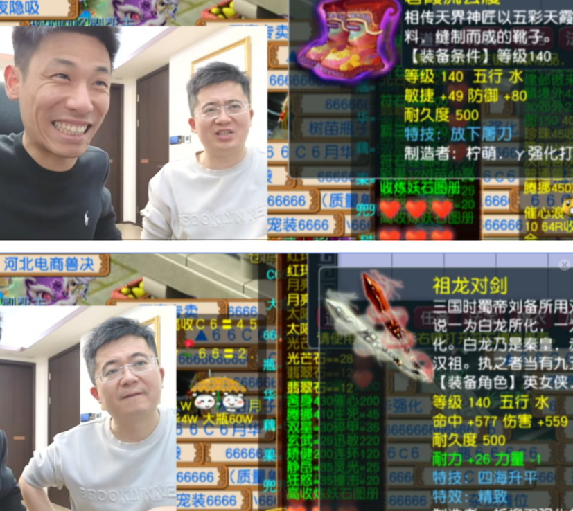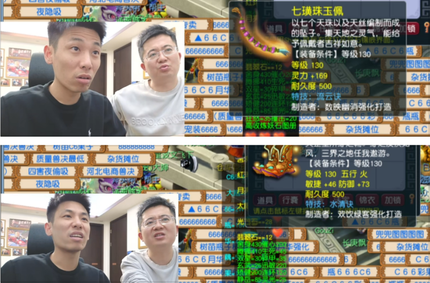 有意思的是,一开始小昏招还没到宝哥直播间,前面死活不出货。可自从他来到直播间“加持”后,情况瞬间逆转——130级流云诀项链和130级水清诀鞋子接连问世,这两件直接奔着五位数去了!