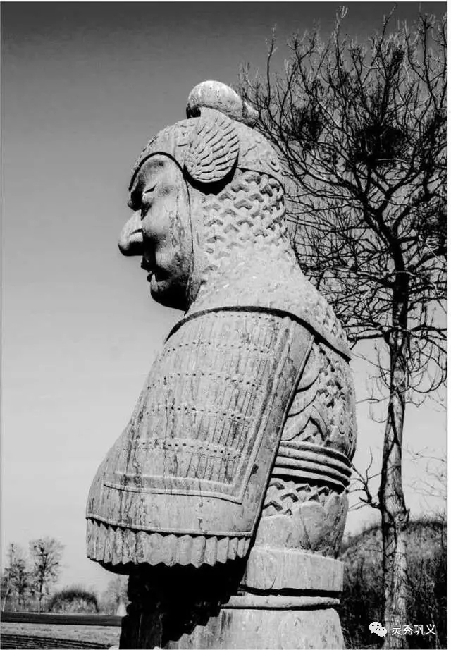 有意思的是,神道东列瑞禽为羊头(其他瑞禽均为马头),成为宋陵14件瑞禽中的唯一;西列武士头盔两侧有护耳,双手按钺,因形神酷似卡通人物,成了游客镜头里的宠儿。