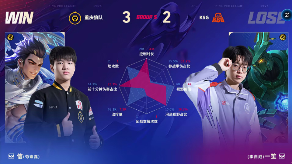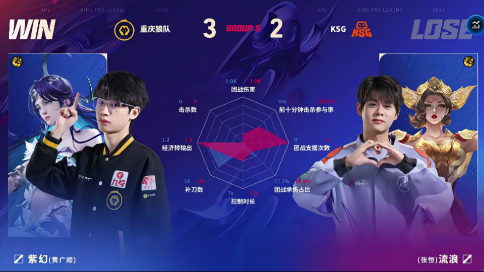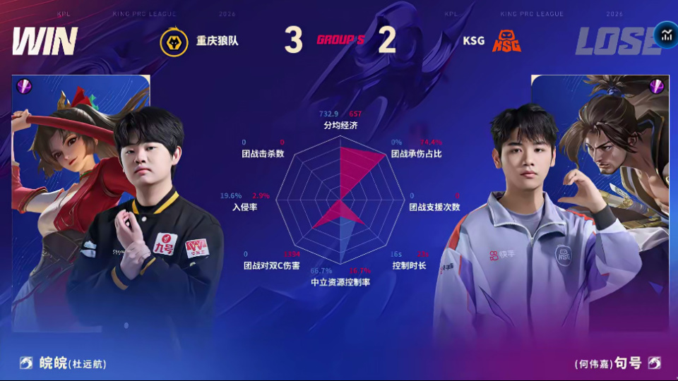 狼队/KSG第五局数据对比:道崽蚩姹线杀率高达百分百