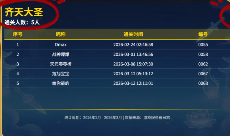 官方终于公布了畅玩服“生死劫”通关的第二批名单。令人意外的是,通关人数最多的服务器竟然不是呼声最高的建邺城!榜首被横扫千军和紫气东来两区并列摘得,各有8位玩家成功通关。紧随其后的是建邺城、紫禁之巅和笑傲三界,均有6人上榜。再往后,齐天大圣和龙卷雨击也榜上有名。D总依旧是一骑绝尘,稳坐头把交椅,而宝哥所在的服务器只排在第四位,这成绩确实有点说不过去。接下来是无与伦比,4人通关;妹子扎堆的此最相思也有两人成功突围;大雁塔同样是2人;2025区只有1人;龙泉服务器也仅有1人过关。