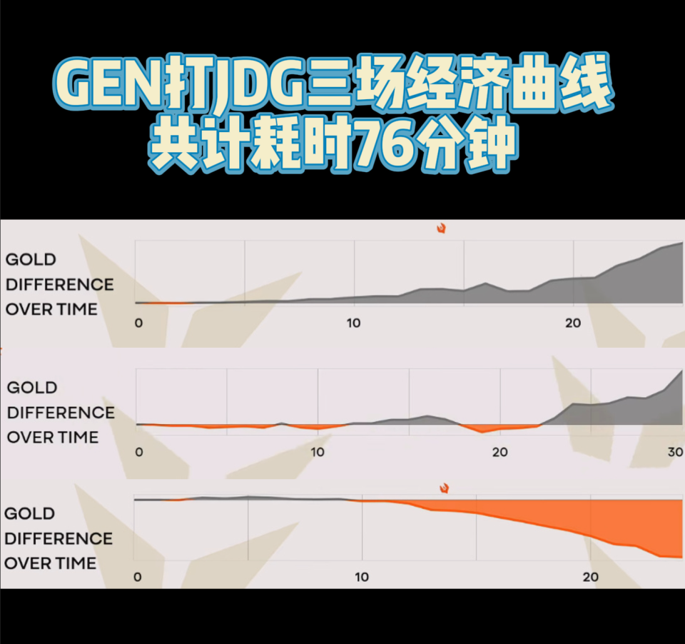 之前GEN打JDG三场比赛一共76分钟,每一场都是一丝机会不给对手,完完整整的碾压,窒息的比赛!而BLG打G2三场比赛一共92分钟,虽然都是压制,但是BLG这边明显会有一些纪律性的问题,有压制力但不够稳定。而这不稳定因素,在对到GEN,一旦出现就是一条巨大裂缝!