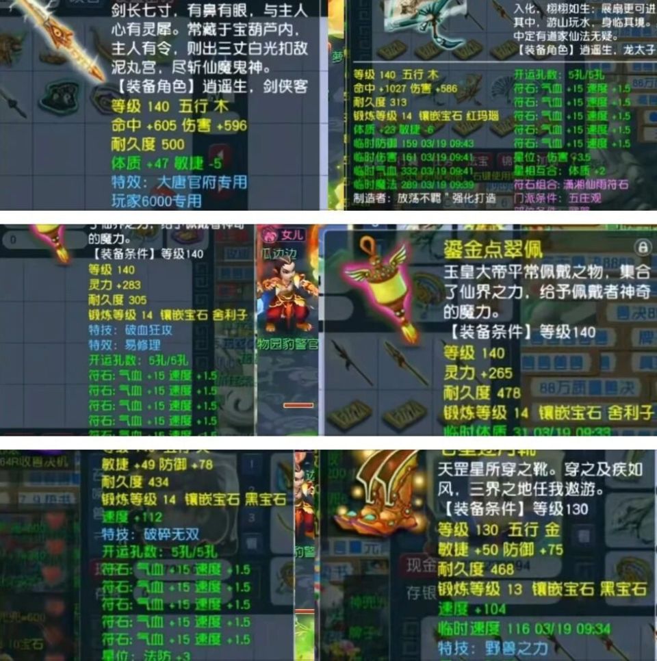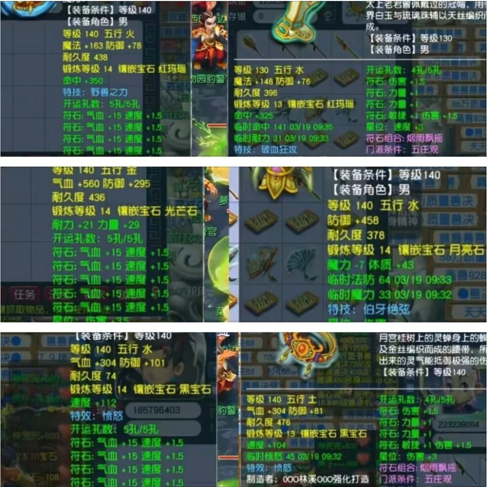 140级衣服:宝哥的是耐力双加,属性完美;路大叔虽然加了体质,但自带特技“伯牙绝弦”,两者各有千秋,这局算平手。