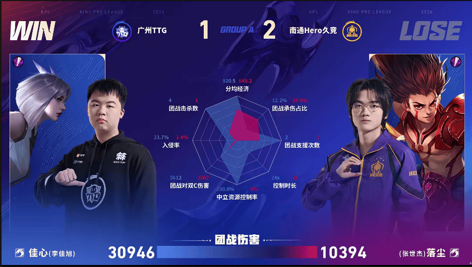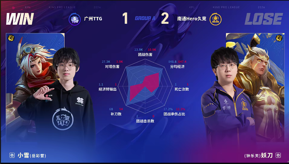 TTG/Hero第三局数据对比:小雪戈娅数据全包围妖刀后羿