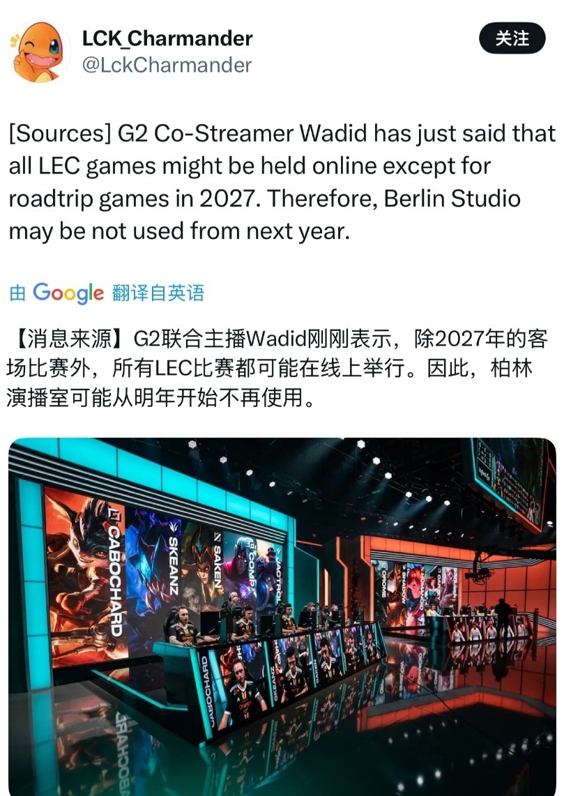 LPL没有新鲜血液,欧美赛区更是如此,而在今天,LEC也是传出一个坏消息,联合主播Wadid爆料,明年LEC的比赛大多都会转到线上赛,演播室可能不会再使用了。