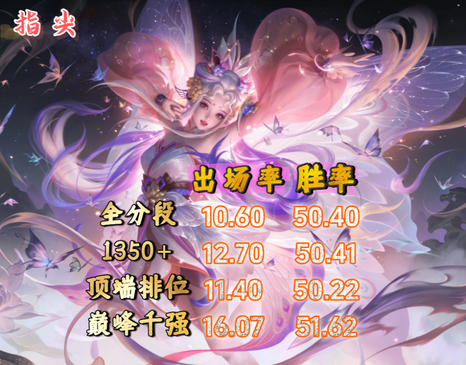 蚩奼在体验服20日削弱,如果实装,或许就要掉下这个位置了,但敖隐和元射真的是相当稳定,优先级相当拔尖,几乎是版本必选的英雄。