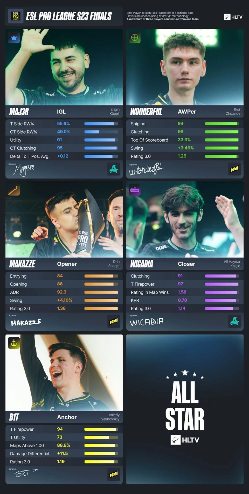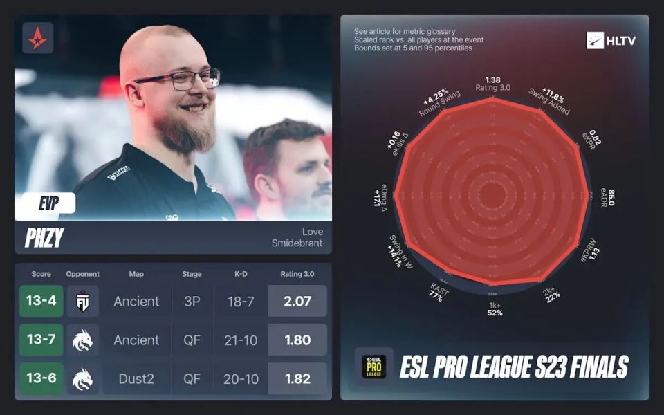最近EPL S23的EVP和全明星阵容HLTV已评出,原文来自HLTV,由完美世界电竞APP翻译。