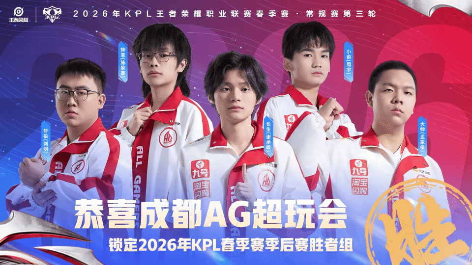 恭喜成都AG超玩会确认锁定2026KPL春季赛季后赛胜者组!