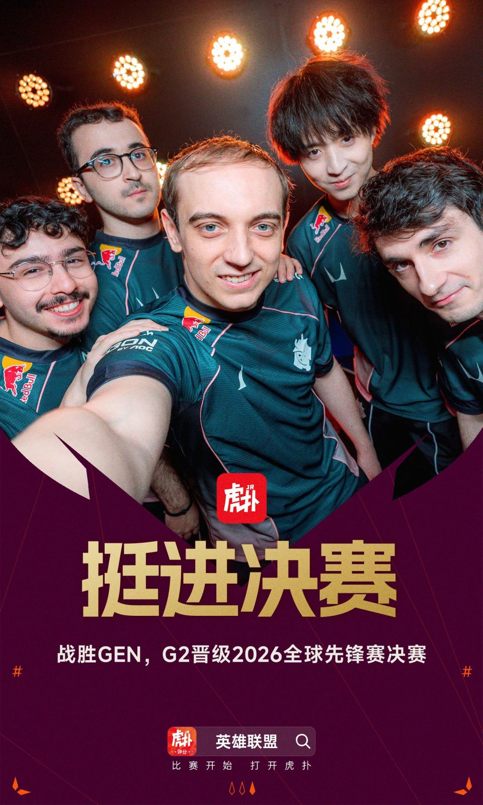 虎扑03月21日讯 战胜GEN,G2成功晋级2026全球先锋赛决赛。