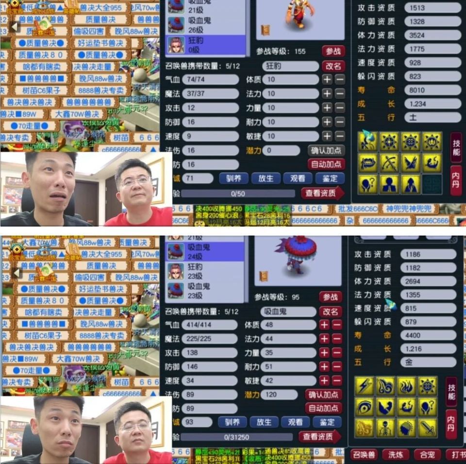 谁也没想到,最后一组炼妖直接起飞,一口气炸出11技能和12技能两只狂豹。11技能那只资质还算不错,可12技能那只资质实在太拉胯,宝哥叹了口气:“这种资质,养三四年才能成型,实在等不起。”最终还是忍痛放弃。