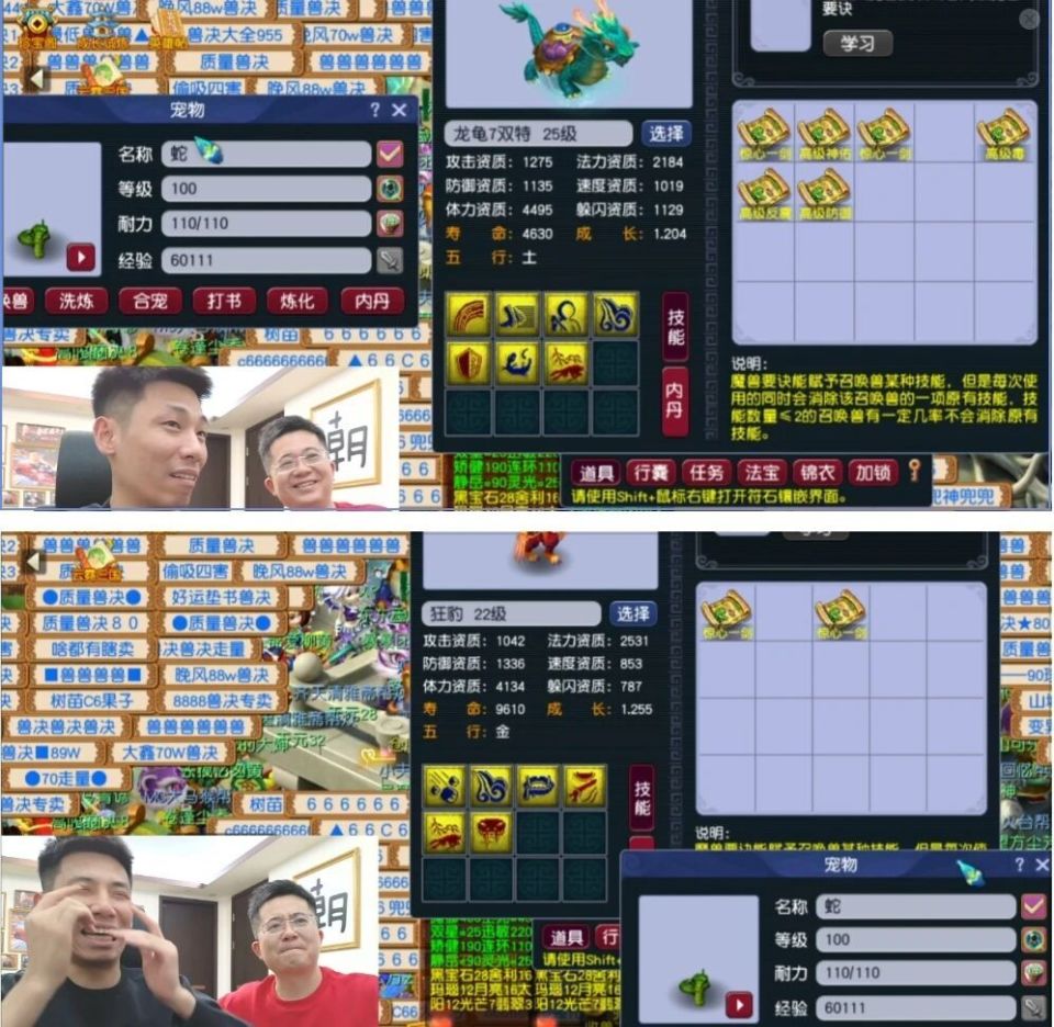 但真正的考验还在后头。宝哥准备了两只特殊宝宝——一只6技能龙龟、一只7技能狂豹,都同时带有剑荡四方和法防。这一次,他玩起了“盲打”:把所有的技能书都挡住,打完再看结果。可惜命运没有站在他这边,两只宝宝的特殊技能全部被打掉。算下来,最近他已经打废了近十只这样的特殊宠了。