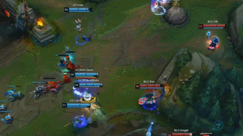 这波BLG非常伤,但之后Bin单人线配合Xun反围剿打出一波反击战并且控下小龙,但BLG随后的上路进攻被Caps抓住机会,直接击杀两人,重新掌握局面主动,Caps此时已经拿下6个人头,成为BLG最难处理的点。