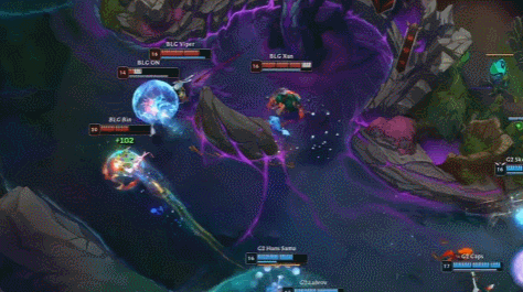 24分钟G2三人抓边,Bin尝试换人头失败,BLG四人上头支援强杀芸阿娜,但Viper轮子妈被皇子单杀,BLG输出全部阵亡,被G2围剿打出一波团灭。