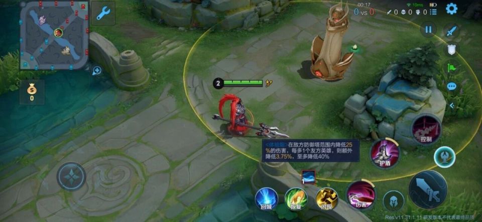 比如有五位英雄越塔,就降低25%+4%x2.5=35%伤害,使得前4分钟的越塔成本变高很多。