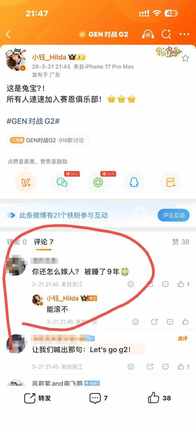 昨日LPL主持人小钰与《英雄联盟》选手Rookie分手事件再起波澜。在小钰为G2战胜GEN感觉不可思议的微博下,一位网友“白刀子进红刀子出”,怒揭小钰伤疤。