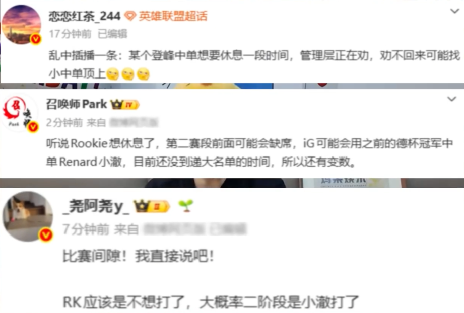 此次Rookie休赛的消息并非空穴来风,而是多位圈内靠谱爆料人同步释放信号,包括电竞圈知名博主、业内知情人士纷纷确认,Rookie目前已经明确表达了不想继续征战第二赛段的想法,心态上出现了明显的波动。据知情人士透露,iG管理层得知消息后一直在全力挽留,反复沟通劝说Rookie留队征战,希望他能调整状态重回赛场,但从目前的进展来看,管理层的苦劝收效甚微,Rookie坚持休赛的态度十分坚决,继续打的可能性很小。