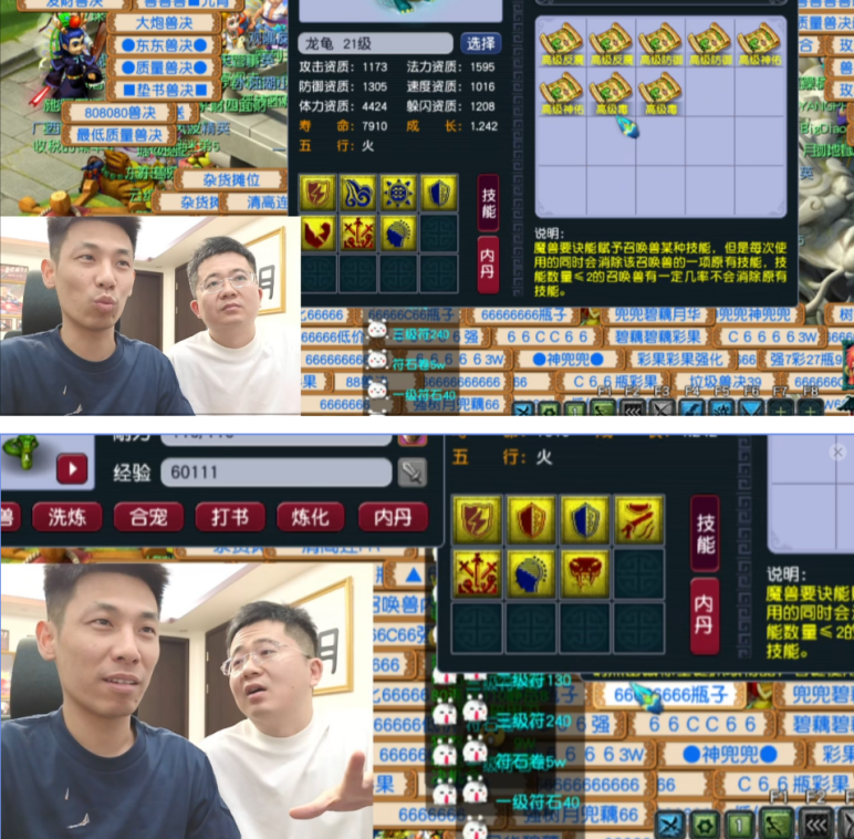 再往后,宝哥开始打一只7技能、带“法术防御”和“剑荡四方”的龙龟。他祭出自己的独门绝技——“闷到底”打书大法,闭着眼睛就往上怼了四本书。没想到这次运气爆棚,三本红书直接上去了,两个特殊技能也稳稳保住。身边的小弟们都劝他见好就收,忍了。最好笑的是老王也凑过来说:“咱们先解决有的问题吧?”宝哥反手就是一句灵魂拷问:“我解决有的问题了,你怎么把我的14技能吸血鬼偷着卖掉了?我的宝宝是怎么从‘有’变成‘无’的?你回答我?”老王当场没脸,直接哑火,再也不敢吱声。
