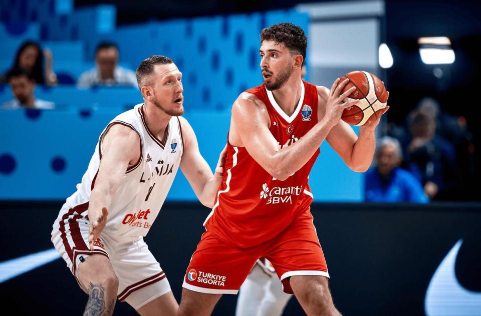 其中,土耳其这边,申京出战27分钟,投篮12中7三分1中0,得到16分8篮板7助攻1断1帽,数据还是很全面。拉脱维亚这边,波尔津吉斯就有些尴尬了,全场仅12投3中,三分5中0得到10分4篮板1助攻。波神好歹也是NBA全明星级别中锋,去年还随凯尔特人拿了总冠军。可是上赛季,波神一直受到不明伤病困扰,状态异常低迷,这也迫使绿军不得不放弃了他,今夏波神转会到了老鹰。看起来,波尔津吉斯还没有从低迷状态中完全恢复,国际赛场上他照样发挥不佳。