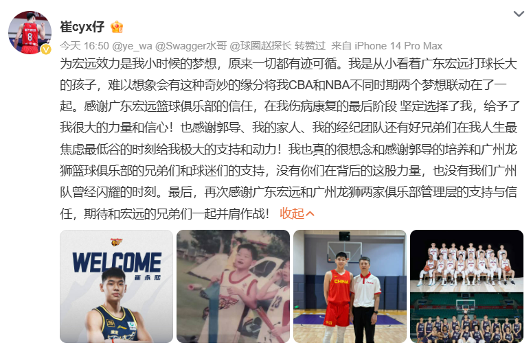 正式加盟!崔永熙发文回应!再见了,NBA