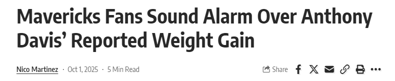 对独行侠队来说压力很大,如果戴维斯在赛季初期以某种方式出现问题,那将是一个巨大的转折,对许多独行侠队球迷来说,这将是最后一根稻草。