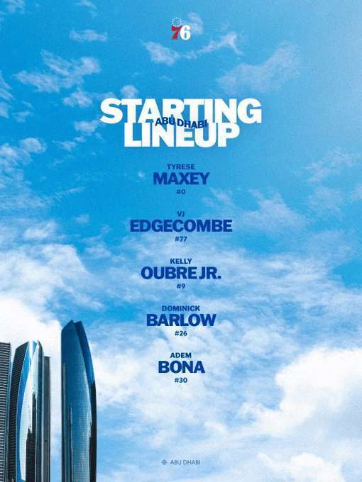 首发阵容是马克西和新科探花郎V.J.埃奇库姆搭档,以及上赛季首发乌布雷和两位工兵巴洛和博纳。