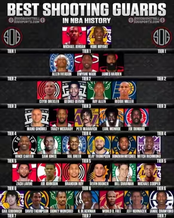 北京时间10月3日,NBA新赛季临近开始,现在联盟当中的顶级分卫越来越少了,出现这个问题的原因是小球时代的盛行,很多出色的分卫都开始打1号位了,干持球大核心,这样可以把他的攻坚能力和吸引防守的能力发挥到最大。而近日美媒也是对于历史分卫进行了分档,我们一起来看看以前的分卫们有多出色。