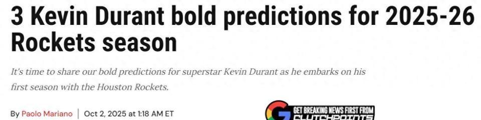 3个大胆预测!美媒展望杜兰特火箭首季:总得分超乔丹+命中率新高