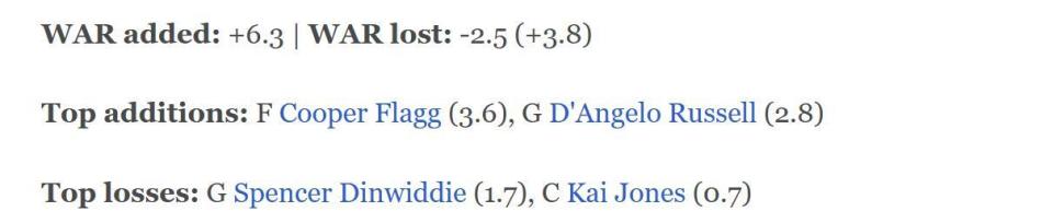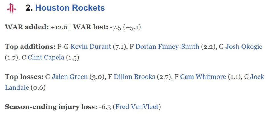 从这一档名单也不难看出,ESPN这份基于WAR调整幅度公布的评选榜单并非与球队实力直接挂钩,而是完全基于休赛期阵容的调整。
