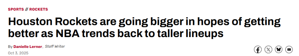 目前尚不确定火箭队的“强硬打法”能否成功,也不清楚双塔潮流会蔓延到何种程度。但就当下而言,火箭队正全力押注这套阵容。